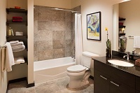 All kitchens and baths have condominium level finishes. Granite counter tops and stainless steel appliances, including french door refrigerators, which are featured in all apartments. In addition, gas ranges are included in all two bedroom apartments.